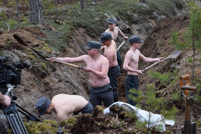 Salpalinja-dokumentin tekoa avusti eri tavoin pitkälti yli sata vapaaehtoista. Taisteluhaudan kaivukuvauksia tehtiin Virolahdella. Kuva Terho Ahonen